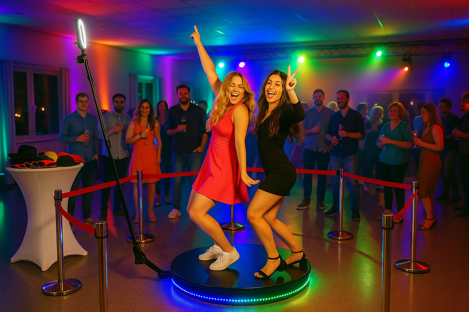 Mache dein Event zu etwas ganz Besonderem: Mit einem 360° Fotobooth erhalten deine Gäste nicht nur Fotos, sondern spektakuläre 360-Grad-Videos, die die Stimmung deiner Feier perfekt einfangen.